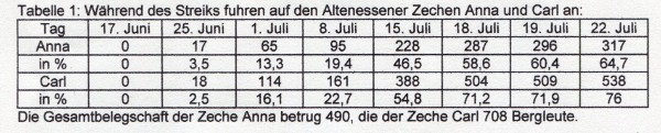 Obwohl die Altenessener Belegschaften am 1. Juli beschlossen den Streik aufrechtzuhalten, bröckelte die Zahl der Ausständigen immer weiter ab, siehe Tabelle 1.